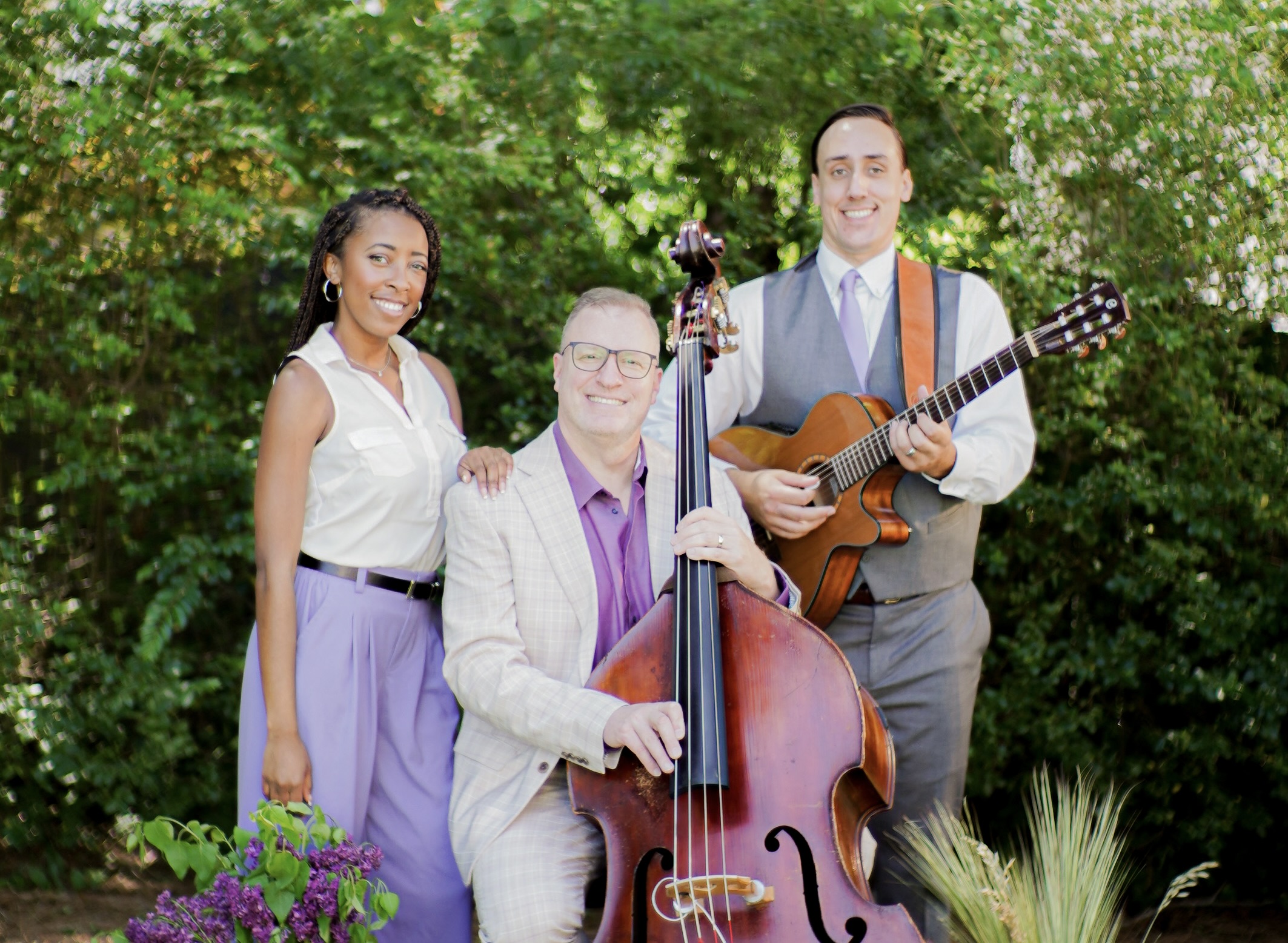 Lilac Wine is best described as a sweet and heady musical recipe that combines tasteful song choices, skillful musicianship and adventurous arrangements that magically combine into music that is both alluring and relaxing to the listener. Lilac Wine excels in combining popular songs of the last 50 years with the traditional musical styles of folk, bluegrass and jazz. You will be amazed at how much lush harmony and instrumental fire can come from just 3 voices and two instruments. Lilac Wine is the ideal small ensemble for an event that desires entertainment at moderate volume levels while maintaining visceral energy for the perfect blend of traditional and trendy music performed with taste!