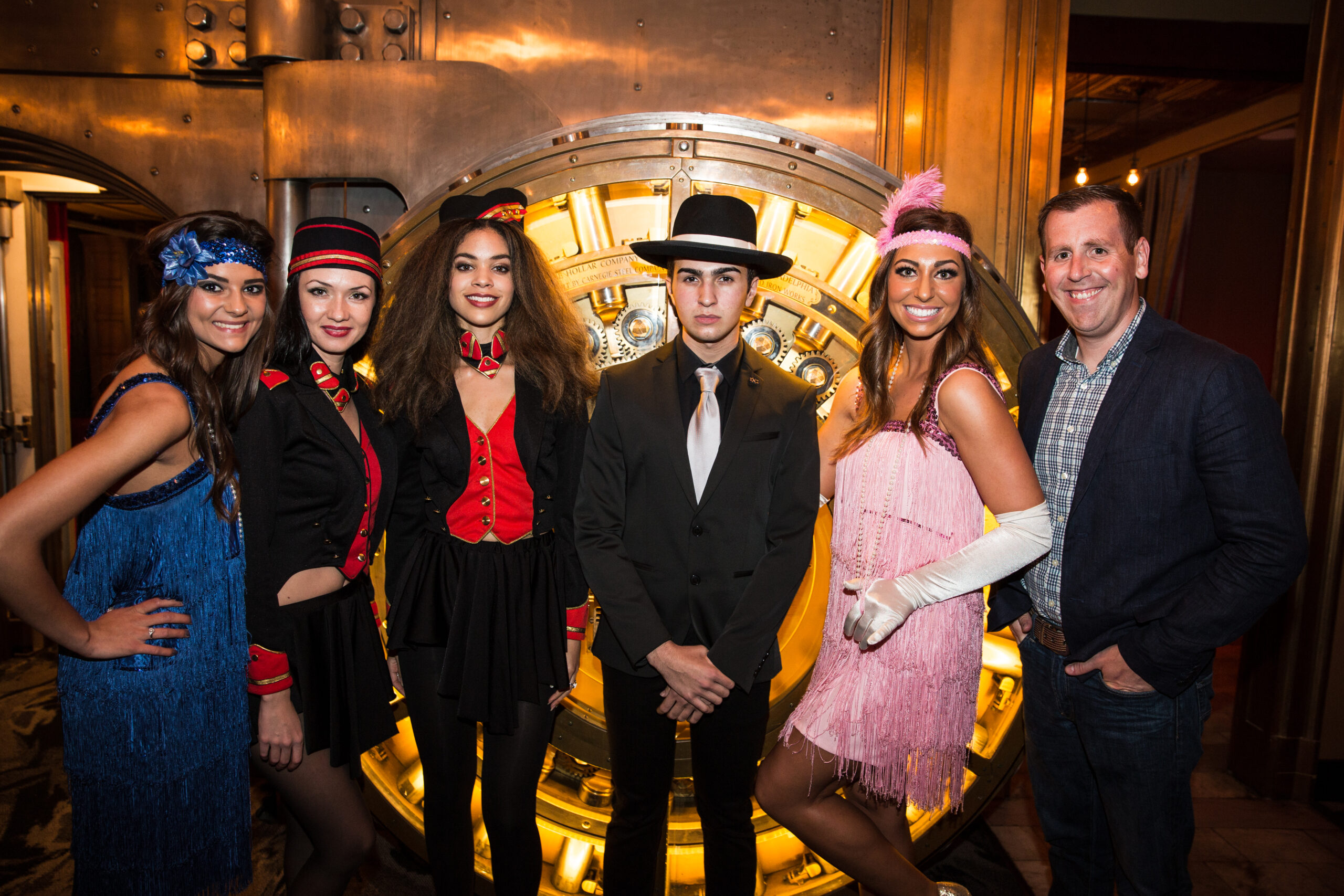 As guests exited their awards dinner, they were greeted by models in 1920s flapper attire and cigar girls serving signature cocktails. Down in the vault, the atmosphere was electric: hors d’oeuvres, drinks, and a lively jazz quartet with a vocalist in a Gatsby-era headdress and pearls.